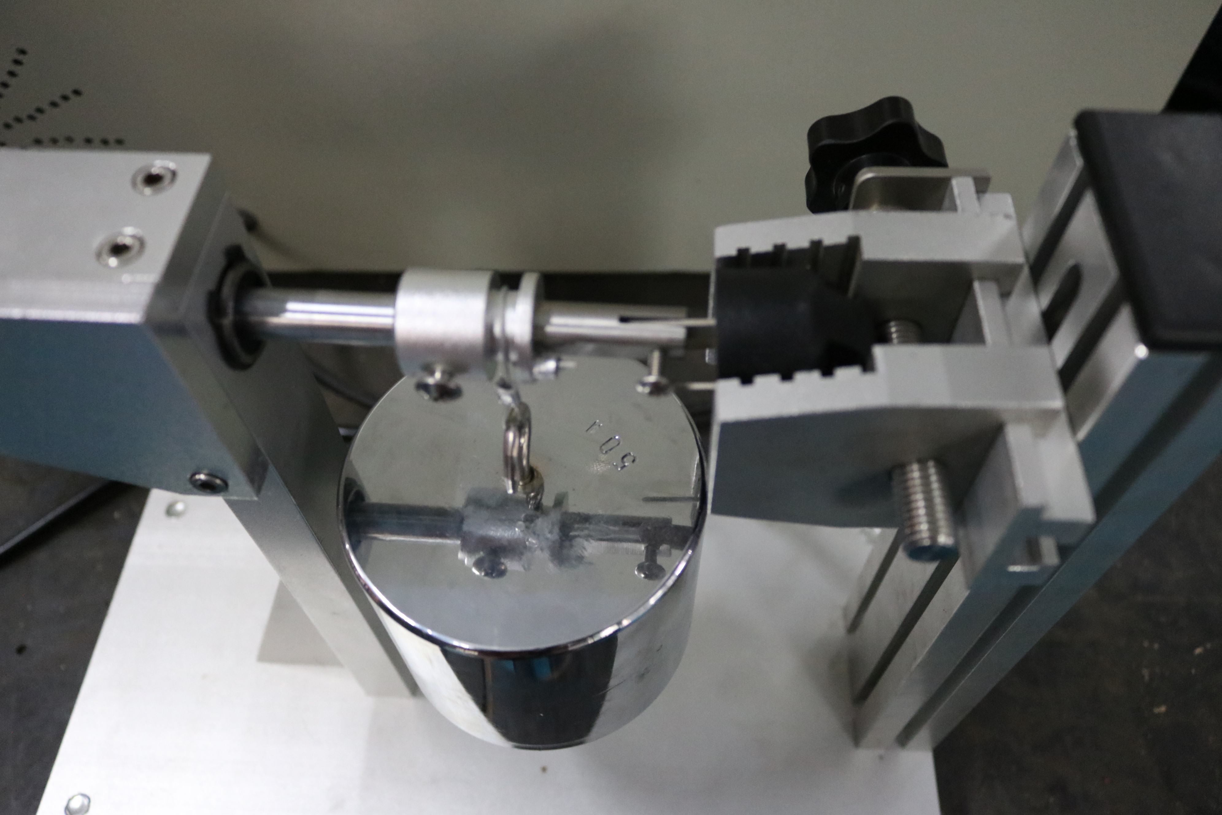 通過定滑輪用掛繩連接的砝碼來實(shí)現(xiàn)對(duì)插腳的拉力測(cè)試,同時(shí)使用一定扭矩臂的轉(zhuǎn)輪和砝碼來施加扭矩,從而評(píng)估插腳的耐扭力性能。